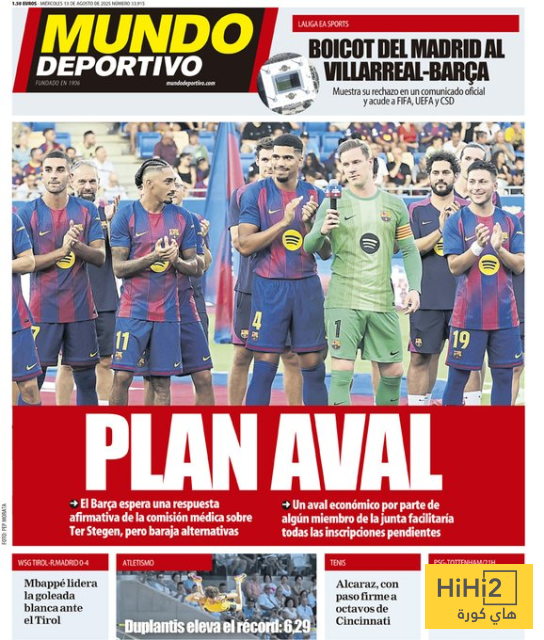 هاي كورة- اعتراض ريال مدريد على اقامة مباراة برشلونة ضد فياريال في الجولة السابعة عشر من الدوري الاسباني في ميامي كان على رأس غلاف صحيفة موندو ديبورتيفو الاسبانية اليوم الاربعاء 13 اغسطس .