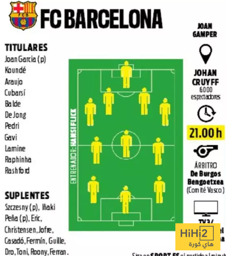 هاي كورة – كشفت صحيفة السبورت الكتالونية عن تشكيلة برشلونة لمواجهة كومو 1907 في كأس خوان غامبر حيث يتطلع البلوغرانا بقيادة هانز فليك لتحقيق اللقب الودي في آخر المباريات التحضيرية قبل انطلاق الموسم الجديد.