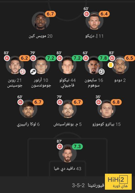 إليكم تقييم لاعبو فيورنتينا في مباراة مانشستر يونايتد:
