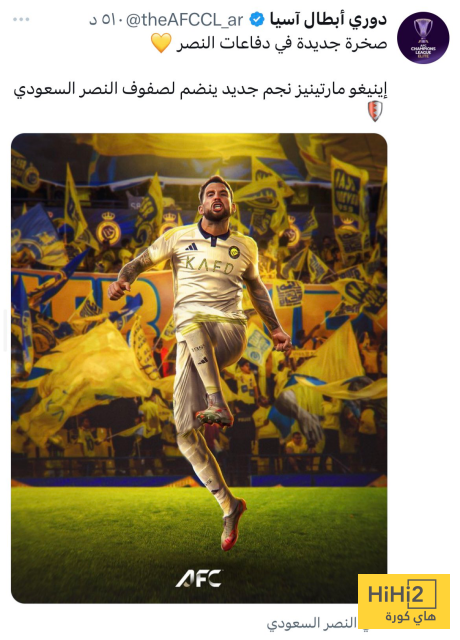 هاي كورة – رحب الحساب الرسمي لبطولة دوري أبطال آسيا على منصة “إكس” بانضمام اللاعب إينيغو مارتنينز إلى صفوف نادي النصر السعودي، واصفًا إياه بـ “الصخرة الجديدة” في دفاعات الفريق.