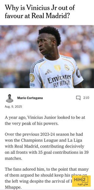 هناك دائمًا ضغوط في مدريد لتحقيق النجاح والفوز بالألقاب، لكن فينيسيوس جونيور كان أقرب إلى دائرة الضوء في هذا الصدد، وليس فقط لأنه يُنظر إليه على أنه أحد أفضل لاعبي الفريق.