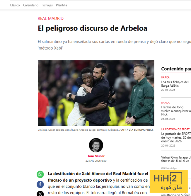 كان إقالة تشابي ألونسو من ريال مدريد بمثابة فشل لمشروع رياضي، وتأكيدًا على أن التسلسل الهرمي في النادي لا يعمل كما هو الحال في الفرق الأخرى ، وتولى ألفارو أربيلوا، الذي لم يكن لديه خبرة تدريبية سابقة مع فرق الصف الأول ولكنه كان على دراية تامة بما جرى في غرفة الملابس خلال الأشهر الستة الماضية ، زمام الأمور. ومنذ مؤتمره الصحفي الأول، أوضح الرجل القادم من سالامانكا أنه لن يتبع “أسلوب تشابي” وسيختار بدلاً من ذلك أسلوباً أكثر ودية مع لاعبيه .