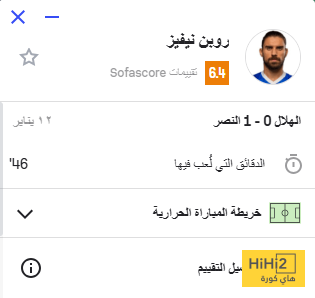 هاي كورة: كان روبن نيفيز أسوأ عناصر الهلال في الشوط الأول ضد النصر، حيث ظهر متراجعًا عن مستواه المعتاد، وواجه صعوبة في بناء الهجمات والمساهمة دفاعيًا، ما انعكس على تقييمه الذي جاء منخفضًا مقارنة بزملائه، مؤكدًا حاجته إلى استعادة تركيزه لتصحيح مسار الفريق في الشوط الثاني.