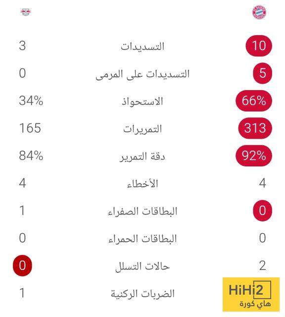 إحصائيات الشوط الأول: