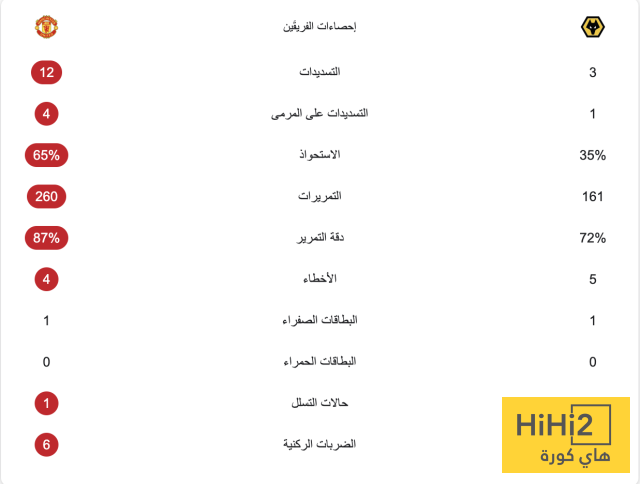 إحصائيات الشوط الأول من مباراة مانشستر يونايتد وولفرهامبتون