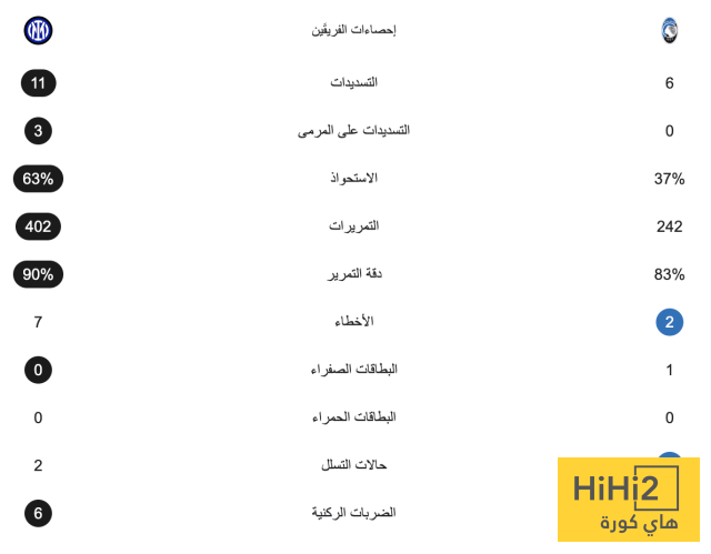 إحصائيات مباراة إنتر ميلان وأتالانتا بعد مرور ساعة