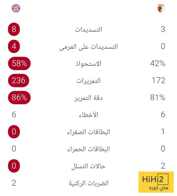 إحصائيات مباراة بايرن ميونخ وأوغسبورغ في الدوري الألماني