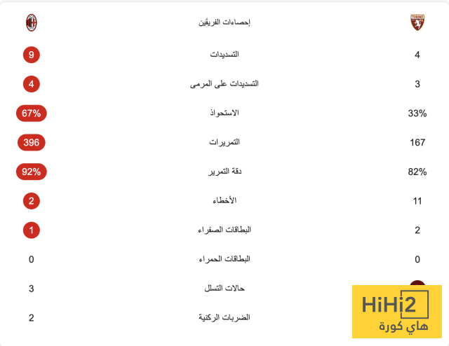 إحصائيات مباراة ميلان وتورينو بعد مرور ساعة