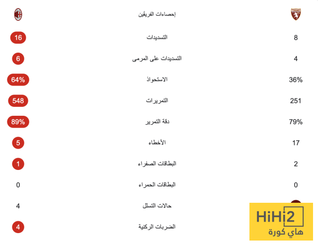 إحصائيات مباراة ميلان وتورينو في الدوري الإيطالي