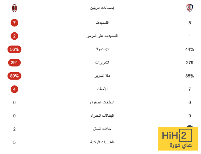 إحصائيات مباراة ميلان وكالياري بعد مرور ساعة