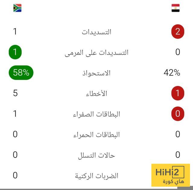 إحصائيات نصف ساعة من مباراة مصر وجنوب إفريقيا في كأس أمم إفريقيا