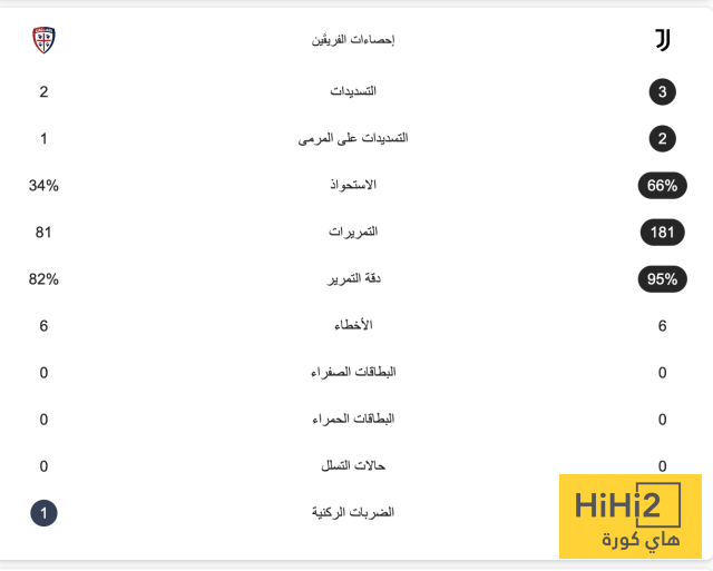 إحصائيات نصف ساعة من مباراة يوفنتوس وكالياري