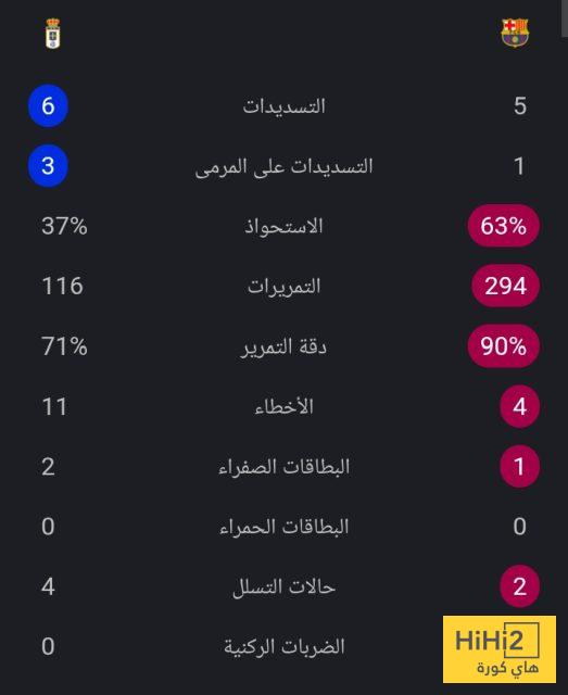 إليكم احصائيات شوط برشلونة و اوفيدو :