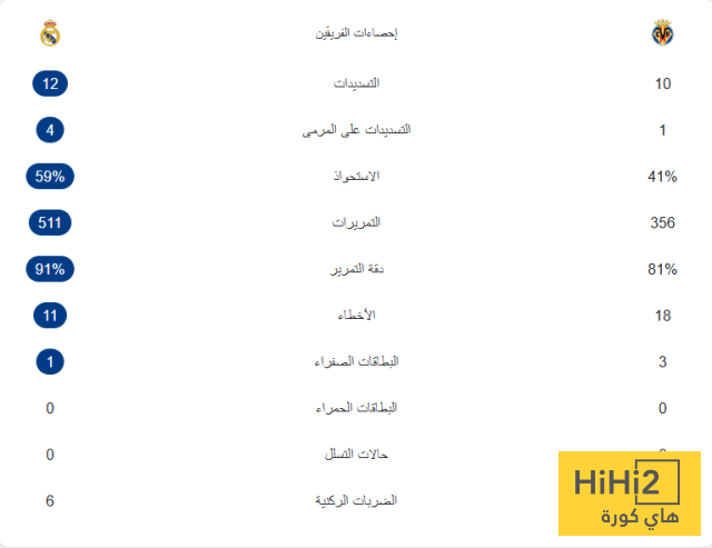احصائيات مباراة ريال مدريد و فياريال في الدوري الاسباني