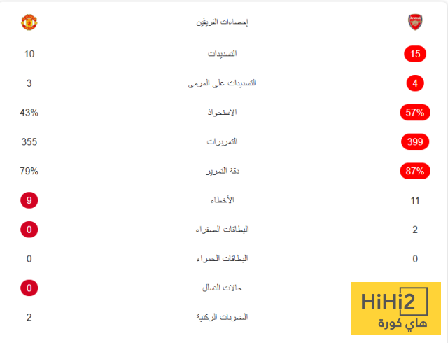 احصائيات مباراة مانشستر يونايتد و ارسنال في الدوري الانجليزي