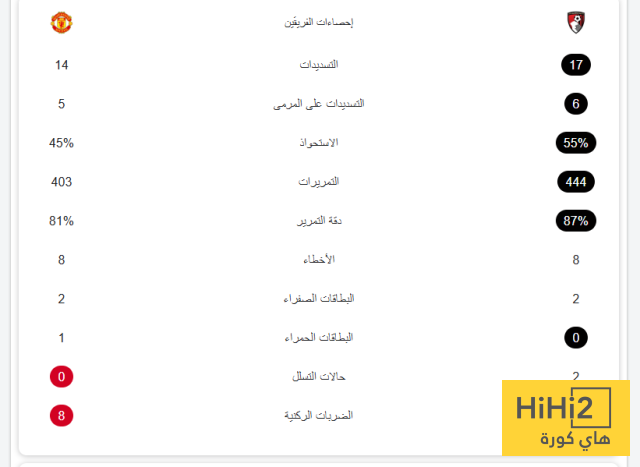 احصائيات مباراة مانشستر يونايتد و بورنموث