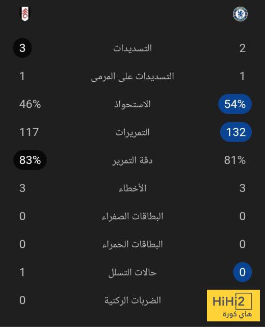 إليكم احصائيات نصف ساعة بين تشيلسي و فولهام: