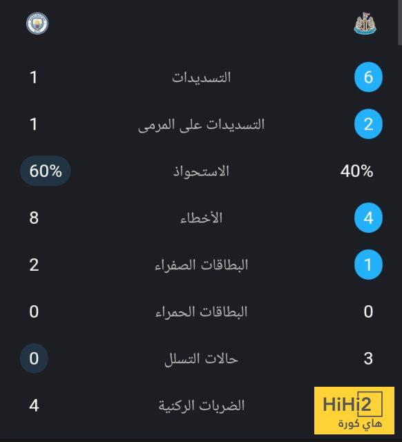 إليكم احصائيات 60 دقيقة بين مانشستر سيتي و نيوكاسل :