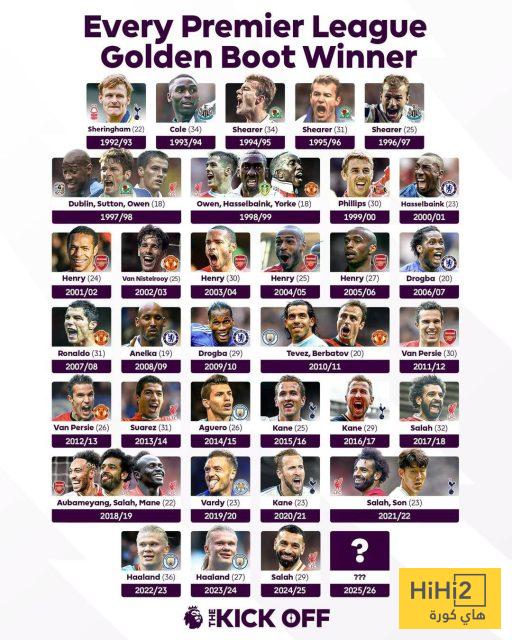 الصورة المرفقة تظهر الفائزين بجائزة الحذاء الذهبي للدوري الانجليزي الممتاز في كل موسم منذ 1992 و حتى الموسم المنصرم .
