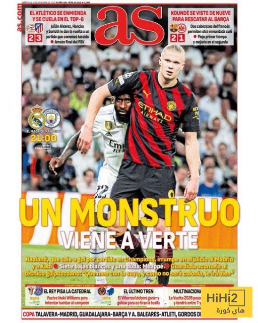 هاي كورة – عنونت صحيفة آس الإسبانية ” وحش قادم ليواجهك ” وذلك بالإشارة إلى ايرلينغ هالاند ، الذي سيقود مواجهة مانشستر سيتي أمام ريال مدريد في دوري الأبطال .