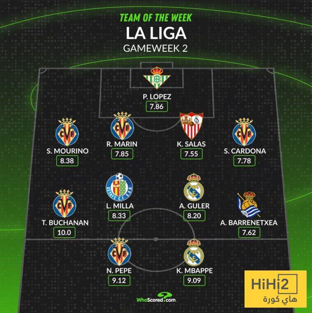 فيما يلي التشكيلة المثالية للجولة، وفقًا لصحيفة ماركا الإسبانية، والتي شهدت تواجد مبابي وبيدري نجم برشلونة: