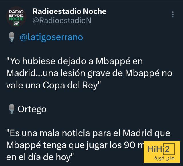 اورتيغو قال : ” أنها اخبار سيئة لريال مدريد أن يضطر مبابي للعب 90 دقيقة كاملة اليوم “.