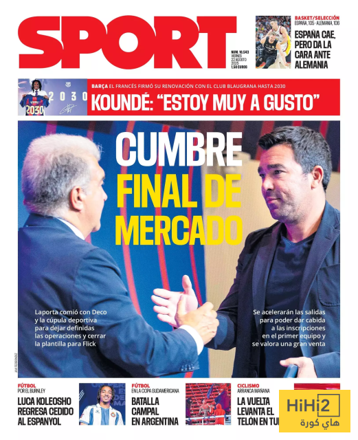 هاي كورة- تصدر ديكو المدير الرياضي للبارسا ورئيسه خوان لابورتا غلاف صحيفة سبورت الكتالونية اليوم الجمعة  22 اغسطس .