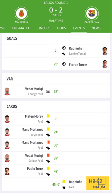 هاي كورة- انتهى الشوط الاول من مباراة برشلونة ضد مايوركا المقامة الآن بتقدم البارسا بهدفين دون رد.