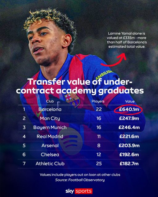 هاي كورة : يتصدر نادي برشلونة عالميًا في قيمة خريجي الأكاديمية المرتبطين بعقود في الوقت الحالي .