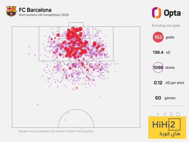 هاي كورة : وفقًا لمنصة أوبتا ، سجل برشلونة 169 هدف في 60 مباراة خلال عام 2025 في جميع المسابقات ، بما في ذلك الأهداف العكسية .