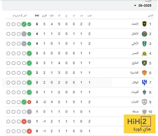 ترتيب الدوري السعودي قبل مباريات اليوم
