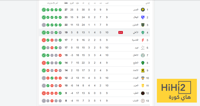 ترتيب دوري روشن بعد سقوط الأهلي أمام الفتح