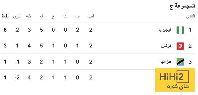 وتصدرت نيجيريا المجموعة بعد الفوز على تنزانيا ثم تونس، بينما جاءت نسور قرطاج في المركز الثاني برصيد 3 نقاط بعد الفوز على أوغندا.
