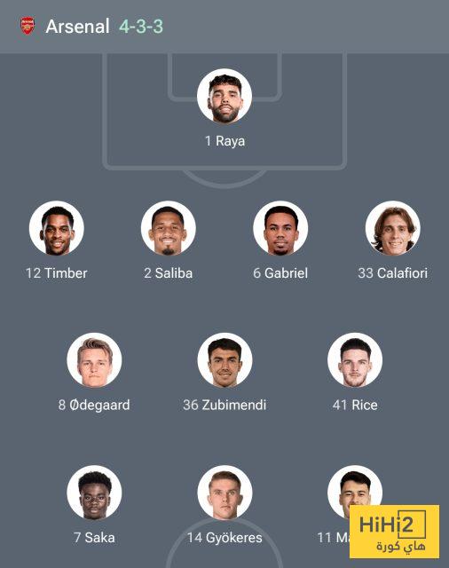 وسيكون على ميكيل أرتيتا دخول المباراة بدون لاعبه المصاب كاي هافرتز، لتكون تشكيلة الفريق المتوقعة كالتالي: