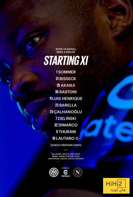 تشكيلة إنتر ميلان ضد نابولي في الدوري الإيطالي