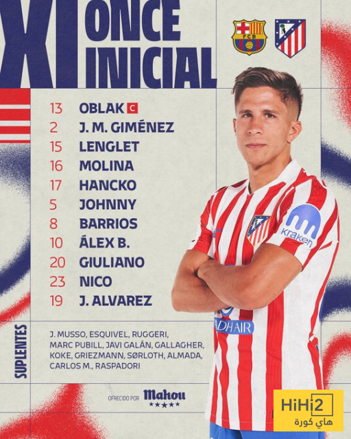 تشكيلة اتلتيكو مدريد الرسمية للقاء برشلونة