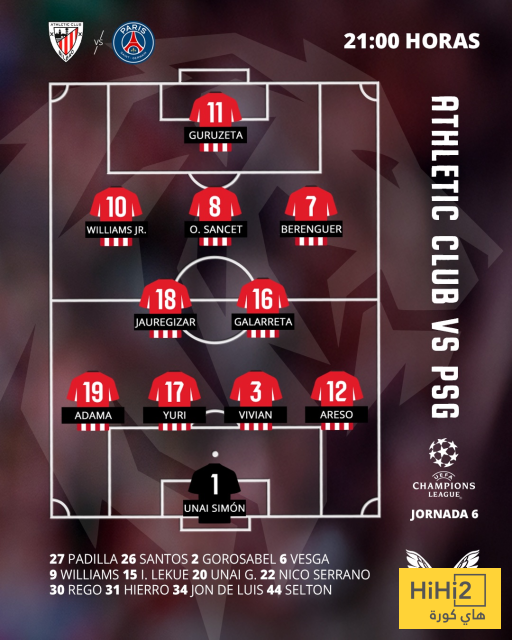 تشكيلة اتلتيك بيلباو الرسمية ضد باريس سان جيرمان