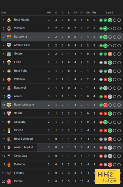 برشلونة بالنقاط الكاملة 6 نقاط ، سجل 6 اهدف واستقبل هدفين فقط.
