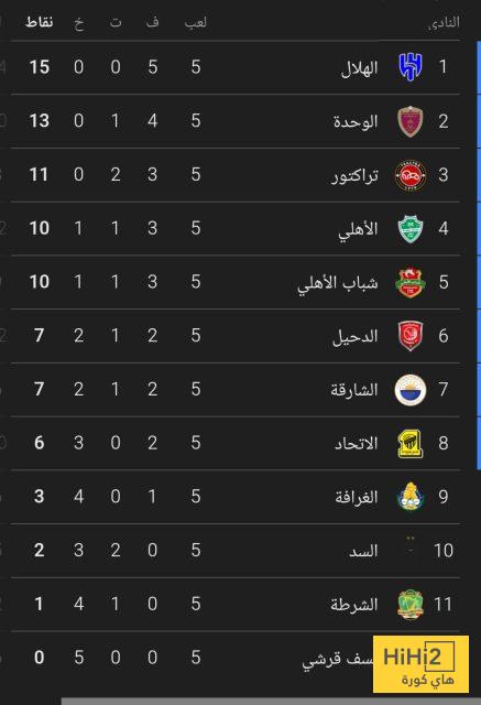 الاتحاد بـ 6 نقاط من أصل 15 ، سجل 10 أهداف واستقبلت شباكه 6 أخرين .