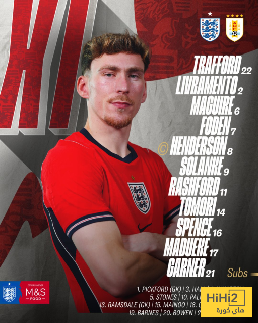 تشكيلة انجلترا الرسمية للقاء أوروغواي