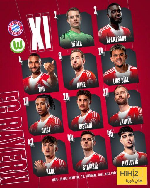 تشكيلة بايرن ميونخ ضد فولفسبورغ في الدوري الألماني