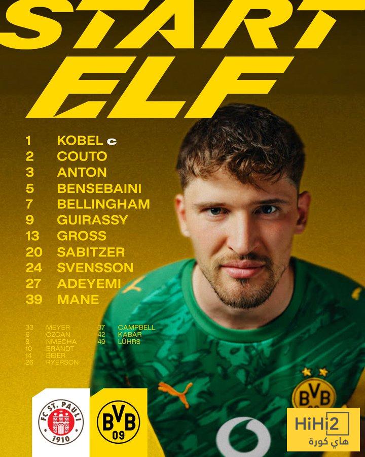 تشكيلة بوروسيا دورتموند الرسمية لمباراة سانت باولي في الدوري الألماني