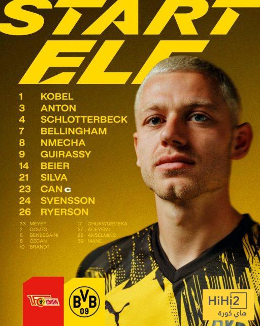 تشكيلة بوروسيا دورتموند ضد يونيون برلين في الدوري الألماني