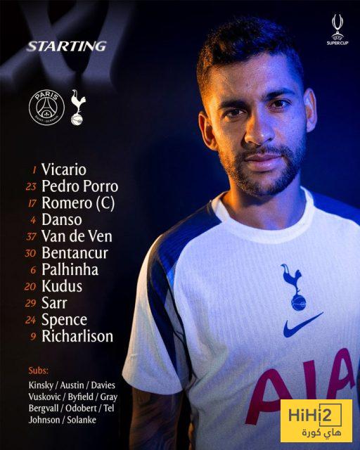 تشكيلة توتنهام الرسمية لمواجهة باريس في السوبر الأوروبي
