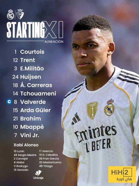 هاي كورة- أعلن تشابي ألونسو مدرب ريال مدريد عن تشكيلة فريقه الرسمية لمواجهة اوساسونا، على ملعب سانتياغو برنابيو، ضمن منافسات الجولة الأولى من مسابقة الدوري الاسباني.