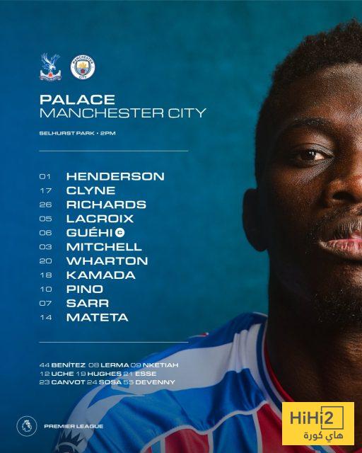 إليكم تشكيلة كريستال بالاس الرسمية للقاء مانشستر سيتي :