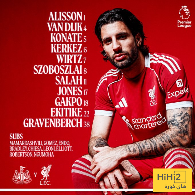 تشكيلة ليفربول الرسمية ضد نيوكاسل