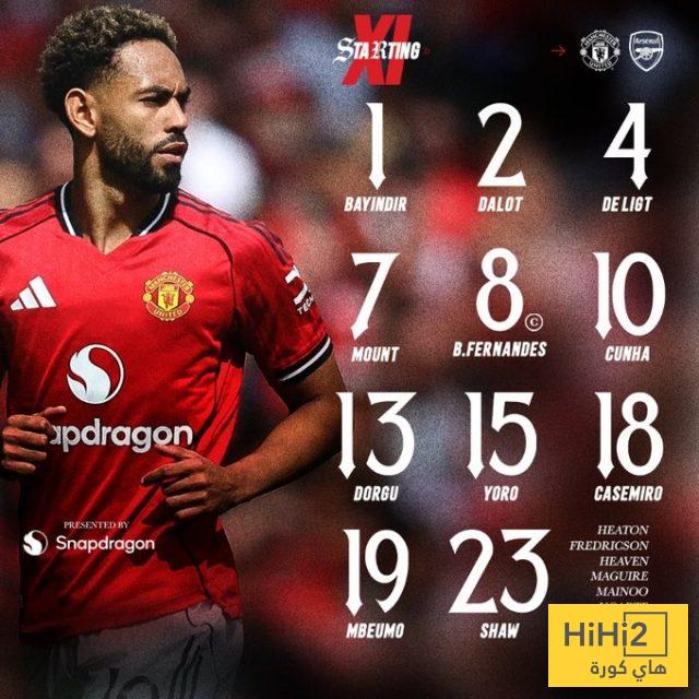 تشكيلة مانشستر يونايتد الرسمية لمباراة أرسنال في الدوري الإنجليزي