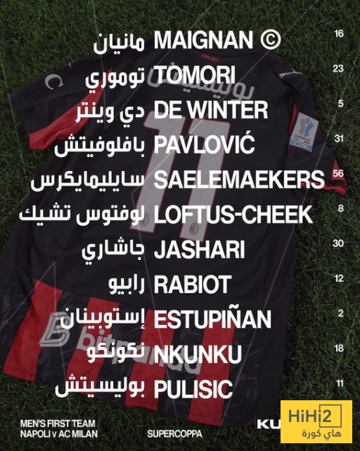 هاي كورة- يواجه بعد قليل فريق ميلان نظيره نابولي ، على ملعب الاول بارك ، ضمن منافسات نصف نهائي كاس السوبر الايطالي .