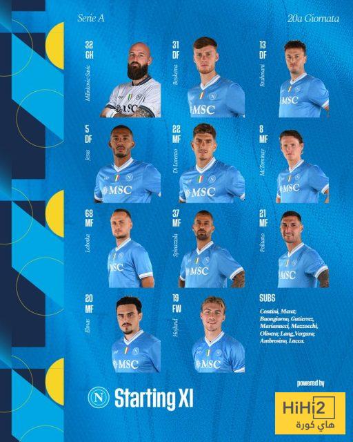 تشكيلة نابولي ضد إنتر ميلان في الدوري الإيطالي